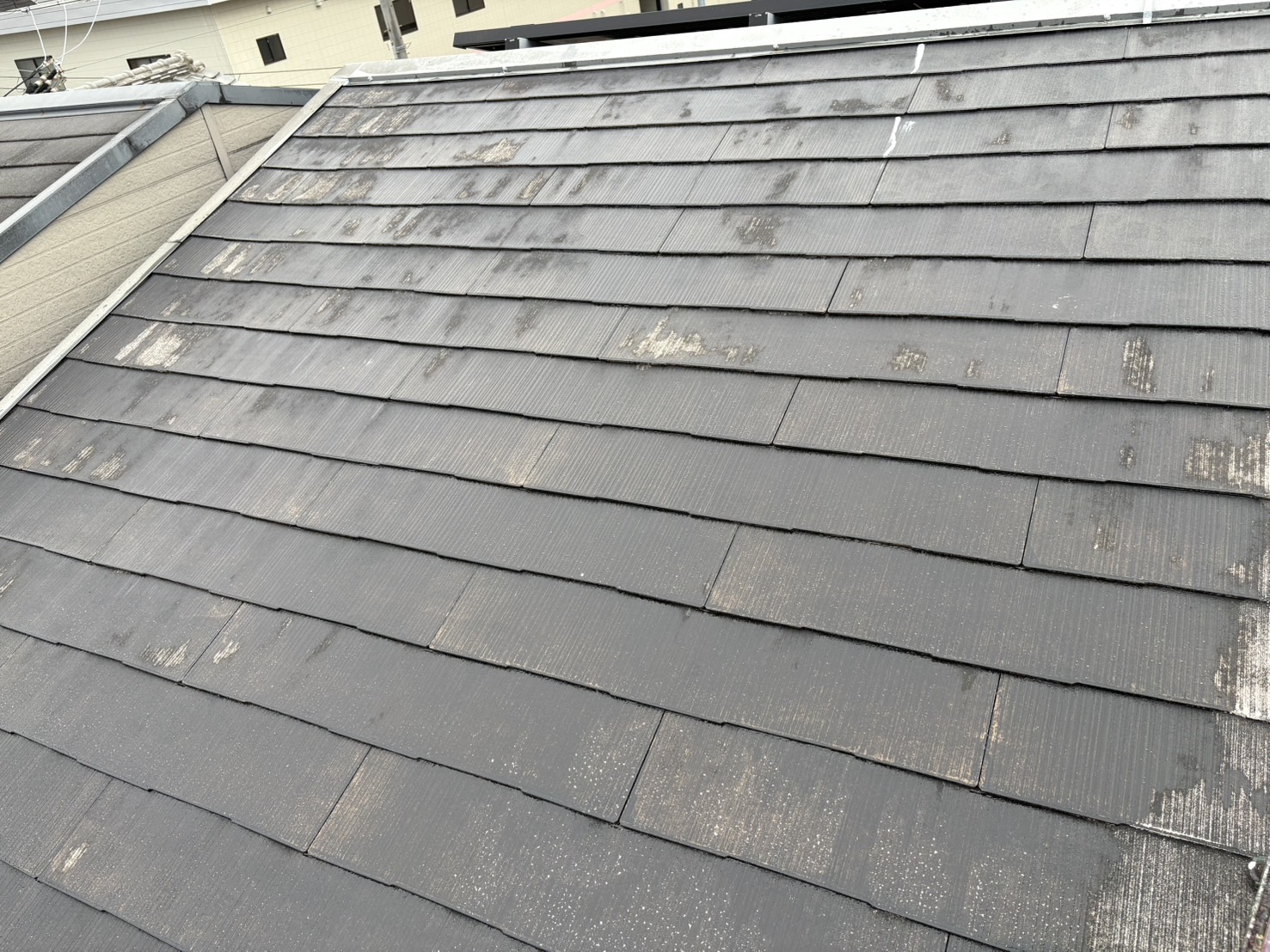 屋根はスレート葺きになり、やはり経年劣化が進行しています。