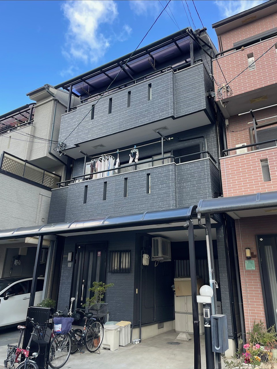 以前の明るい外壁から、深いダークカラーへと生まれ変わりました。